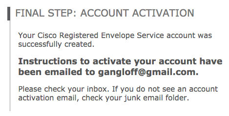 First-time users will need to register with Cisco Registered Envelope Service before they can read an encrypted email.