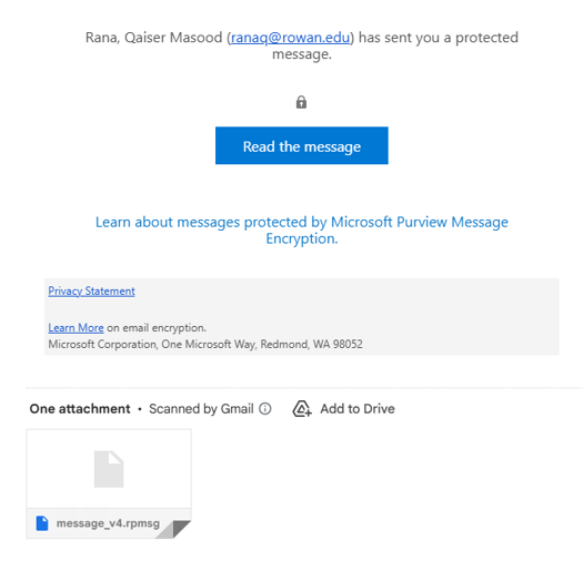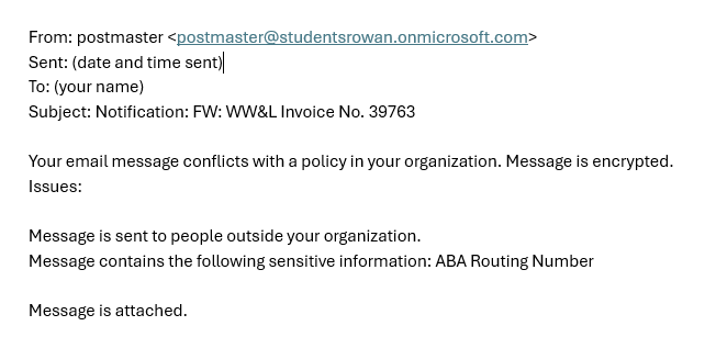 The University uses Microsoft email encryption to help protect the confidentiality and integrity of email sent to non-Rowan addresses and prevent confidential information from being stolen by unintended recipients.